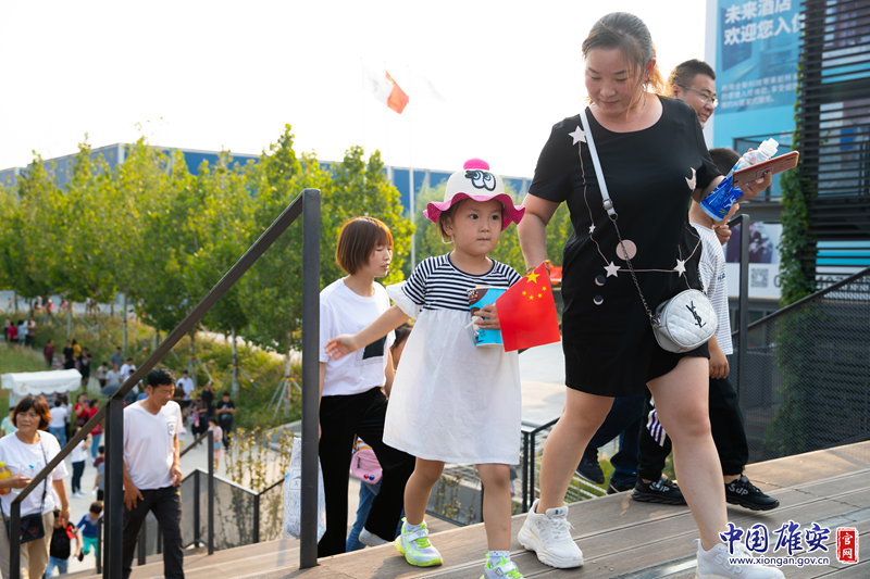 10月2日,小朋友和家人一起来雄安市民服务中心游玩。中国雄安官网记者刘东尧 摄
