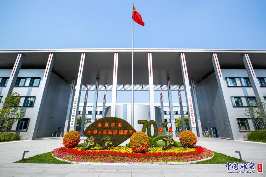 雄安新区党工委、管委会办公楼前的主题花坛。中国雄安官网记者马梦迪 摄