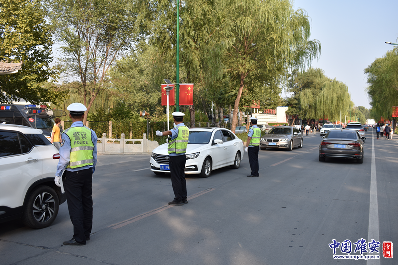 国庆假期,雄安新区公安局交通管理与巡特警支队执勤交警正在疏导交通。雄安新区公共服务局供图