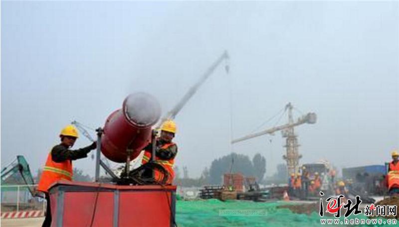 石家庄某地铁施工现场施工人员正在使用除尘炮雾机降尘作业。记者陈建宇 通讯员史晓帆 摄