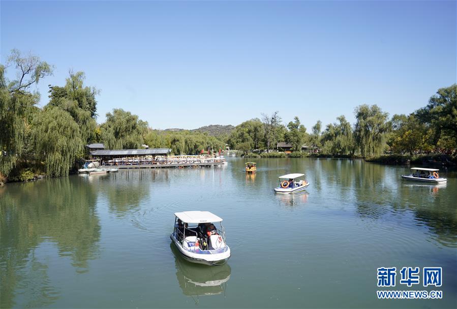 10月5日,游客在承德避暑山庄游览。 国庆假期,不少游客来到河北承德避暑山庄,享受休闲时光。新华社记者金良快 摄