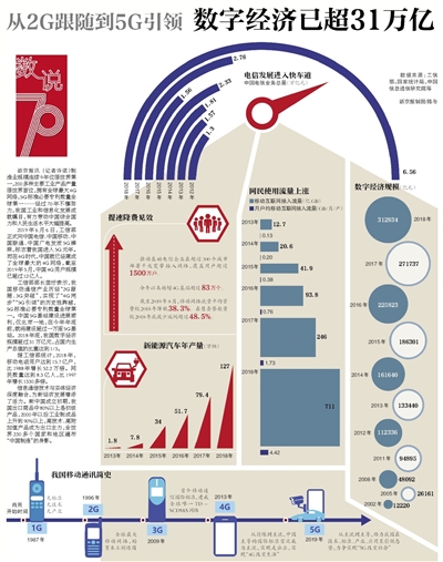 工信部部长苗圩表示,我国移动通信产业历经“2G跟随、3G突破”,实现了“4G同步”“5G引领”的历史性跨越,5G标准必要专利数量全球第一。中国5G基站建设进展顺利,仅北京一地,在今年年底前,就将建设超过一万座5G基站。2018年底,我国数字经济规模超过31万亿元,占国内生产总值的比重达到1/3。