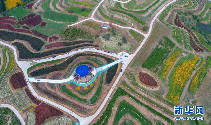 这是内丘县扁鹊药谷花海景区(10月9日无人机拍摄)。