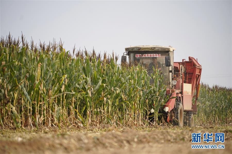 10月10日,雄安新区安新县大阳村的农民在收获玉米。目前,正值河北雄安新区玉米成熟的时节,农民们抢抓农时,收获秋粮。新华社记者邢广利 摄