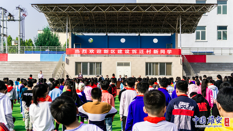 征迁村新同学欢迎仪式现场。中国雄安官网记者毛鹤然 摄