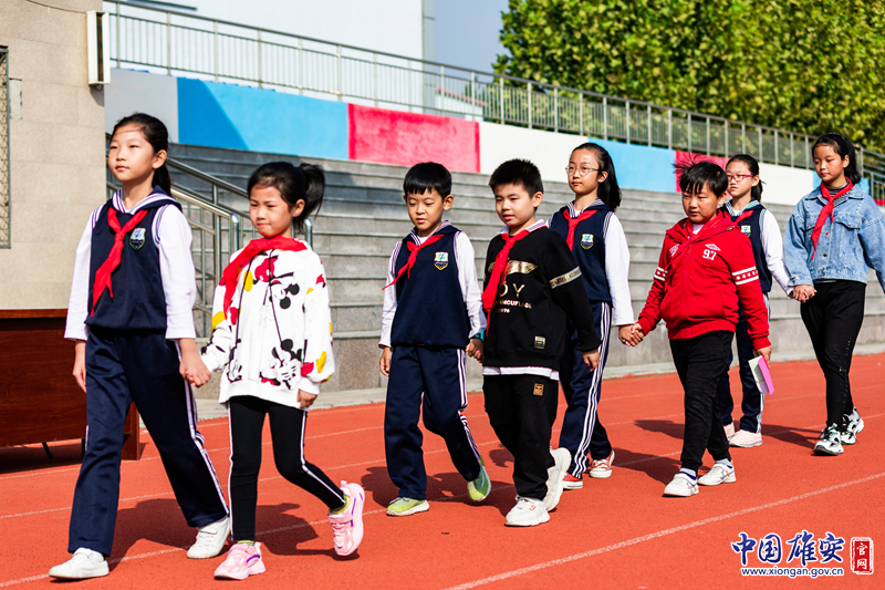 仪式现场,同学们手拉手入场。中国雄安官网记者毛鹤然 摄