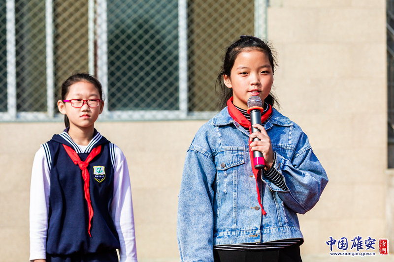 仪式现场,征迁村学生代表杨畅发言。中国雄安官网记者毛鹤然 摄