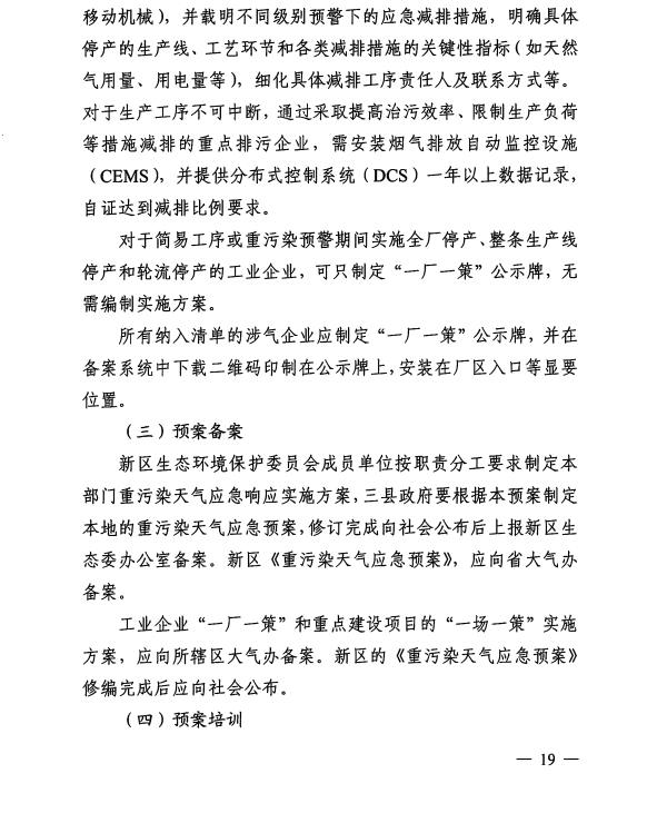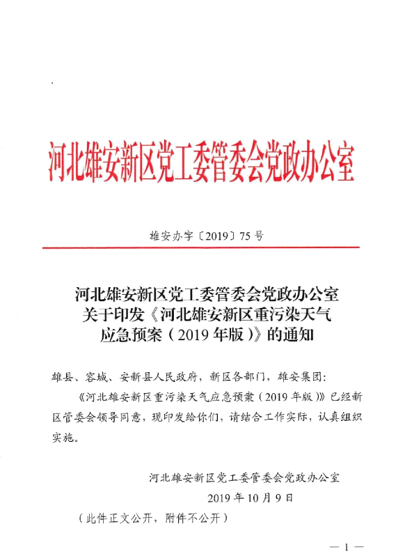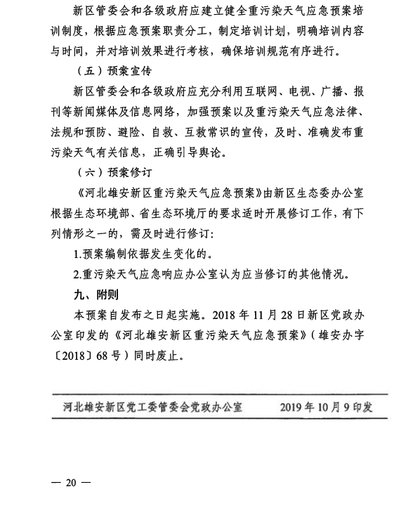 河北雄安新区党工委管委会党政办公室关于印发《河北雄安新区重污染天气应急预案(2019年版)》的通知