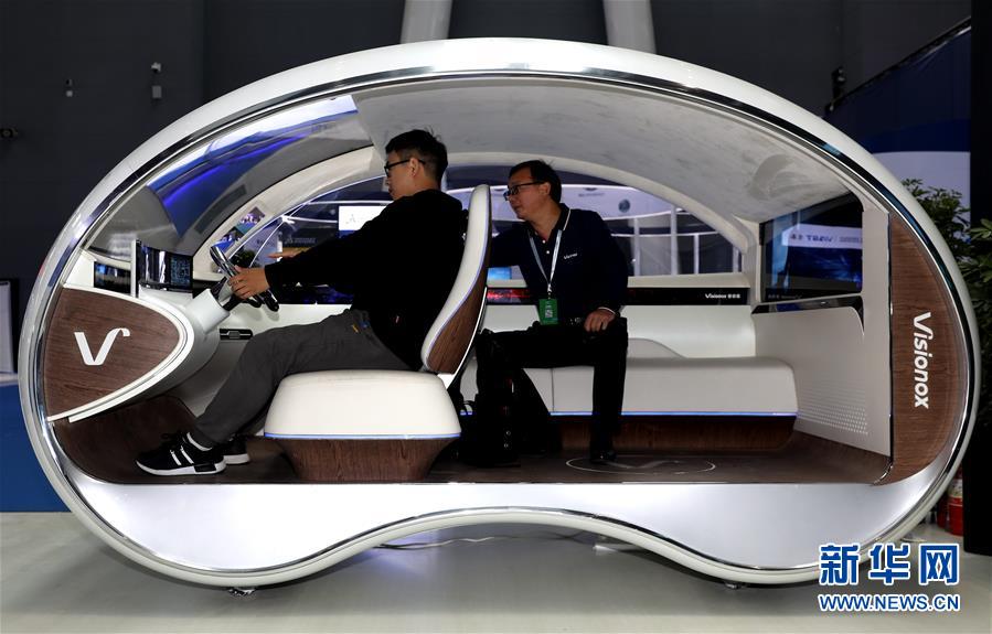 10月11日,观众在数博会上体验一款未来智能汽车。