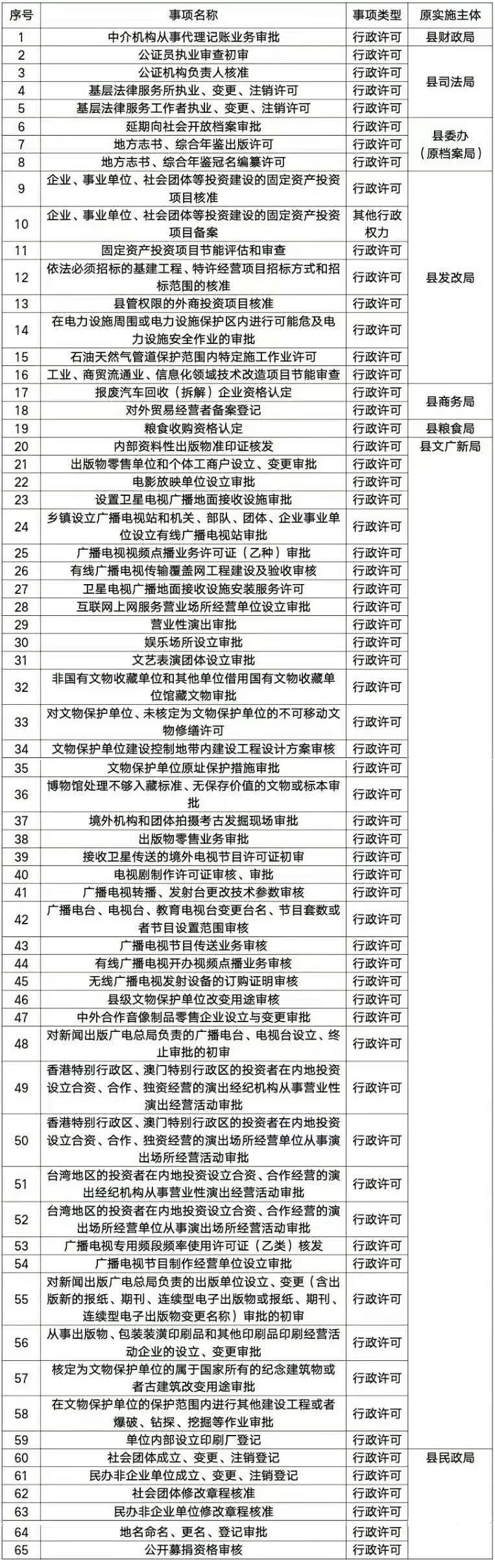 附:容城县人民政府关于65项行政审批事项划转至行政审批局办理的公告