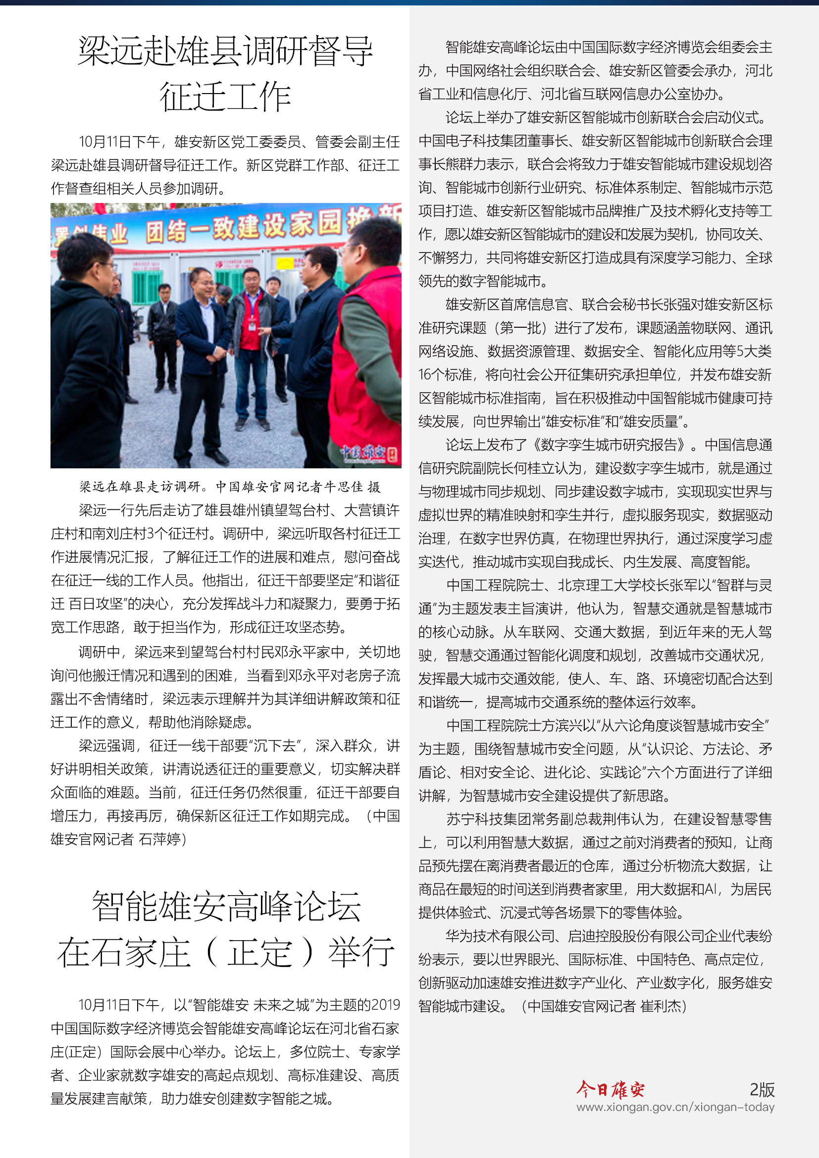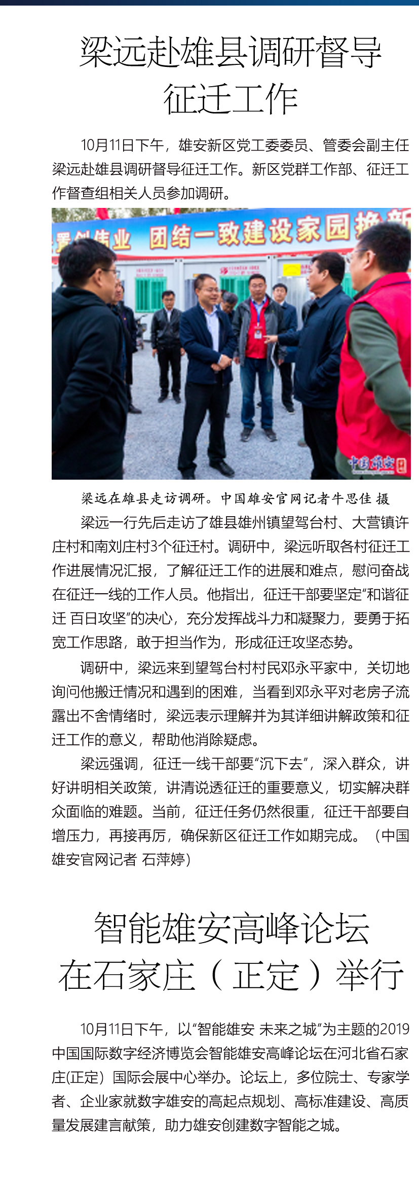 10月11日下午,雄安新区党工委委员、管委会副主任梁远赴雄县调研督导征迁工作。新区党群工作部、征迁工作督查组相关人员参加调研。