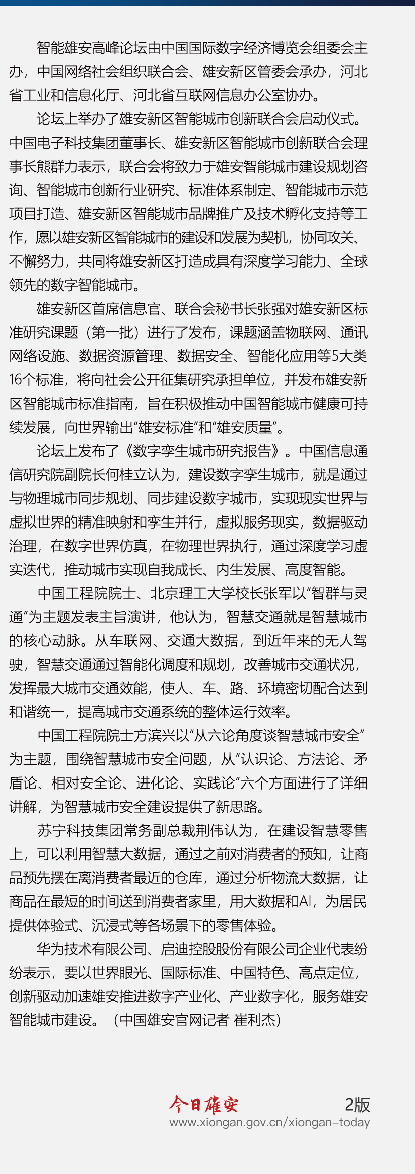 论坛上,多位院士、专家学者、企业家就数字雄安的高起点规划、高标准建设、高质量发展建言献策,助力雄安创建数字智能之城。
