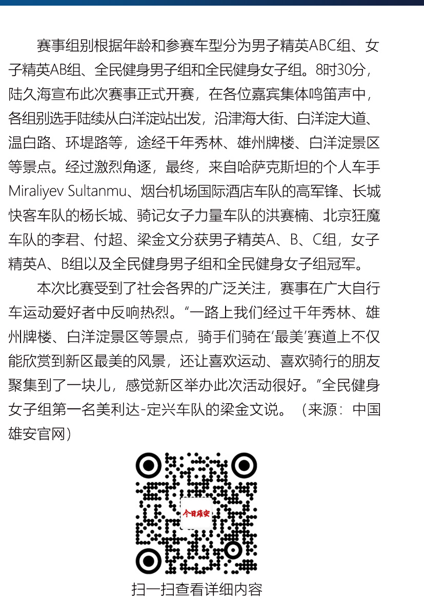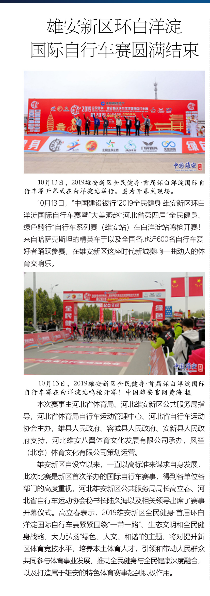 “中国建设银行”2019全民健身·雄安新区环白洋淀国际自行车赛暨“大美燕赵”河北省第四届“全民健身、绿色骑行”自行车系列赛(雄安站)圆满完赛!