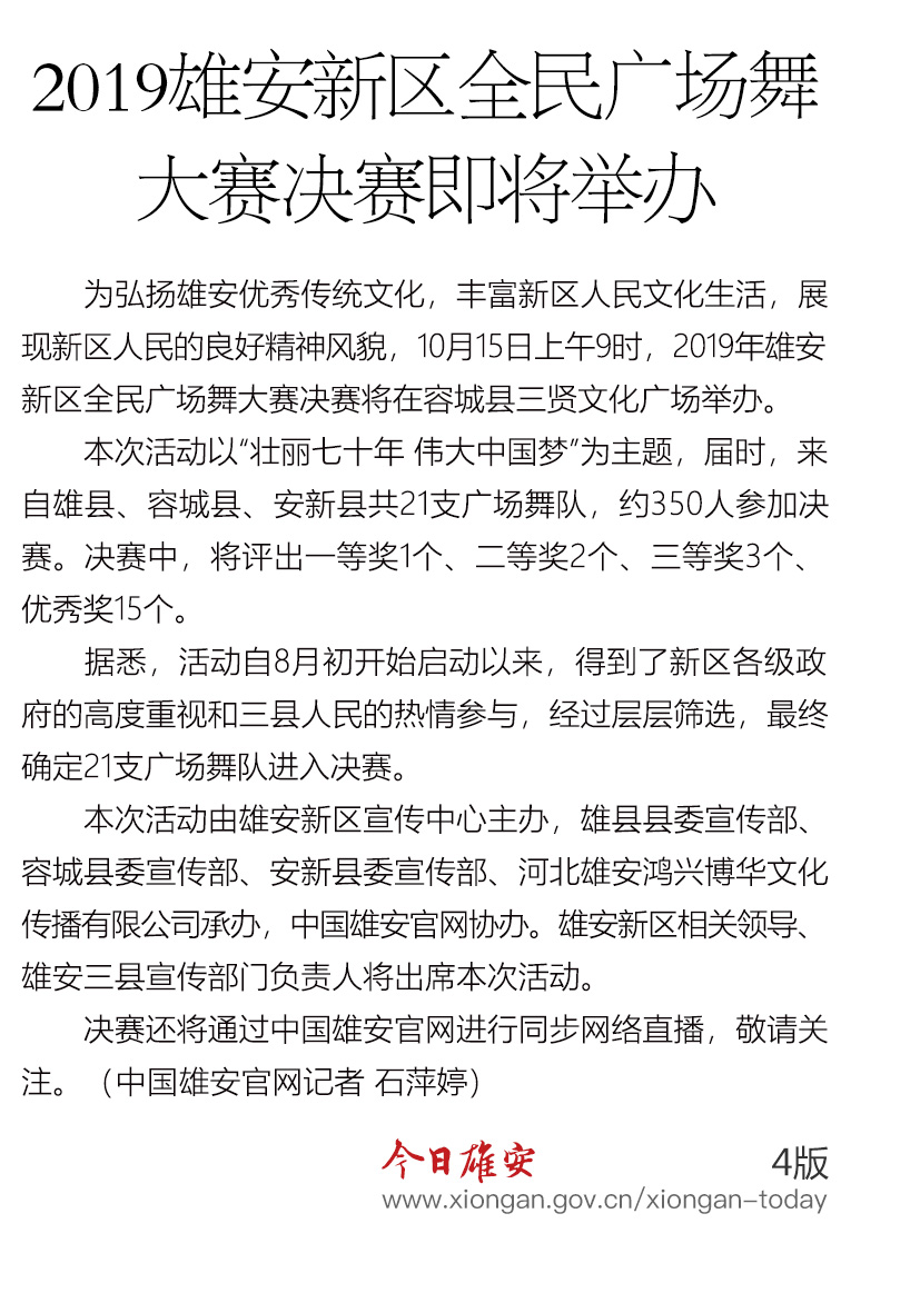 《2019年雄安新区急需人才目录》发布会暨雄安新区人才智力交流会将于10月19日(周六)在雄安新区容城县市民体育运动中心举办。