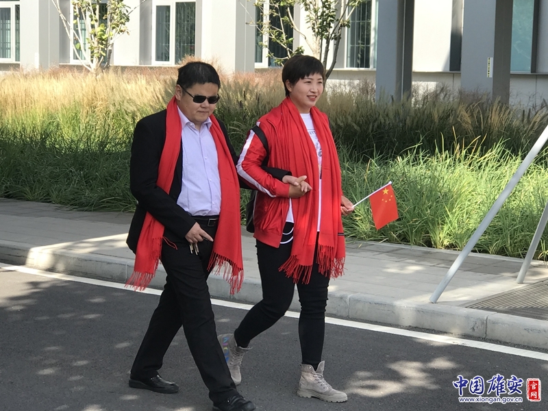 志愿者全程讲解并耐心细致地帮助盲人,带领盲人用手触摸时代脉搏,用心领略雄安的金秋美景,感受雄安发展的美好蓝图。