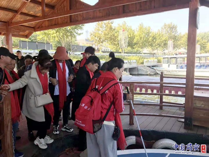 参加活动的盲人和志愿者参观白洋淀景区。雄安新区公共服务局供图