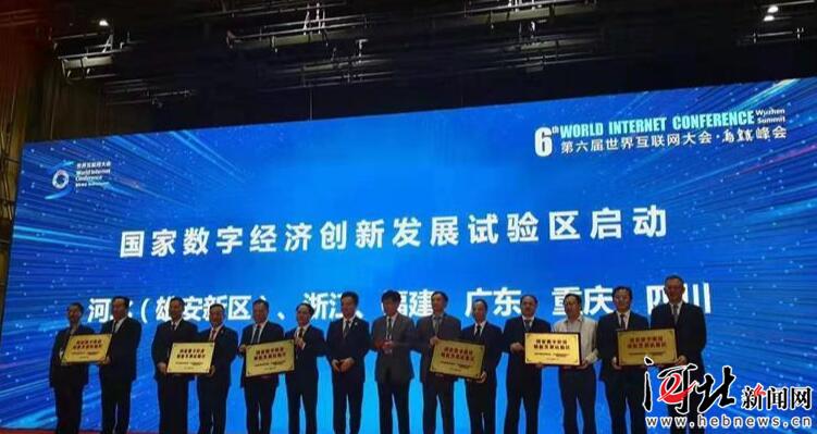 从10月20日下午在乌镇召开的国家数字经济创新发展试验区启动会上获悉,河北(雄安新区)、浙江、福建、广东、重庆、四川等6个试点省市被授予“国家数字经济创新发展试验区”牌匾,正式启动试验区创建工作。