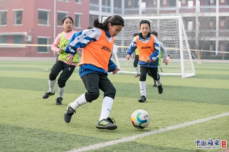 雄县第一小学的学生们身穿专业装备,在球场上挥洒汗水。 王永康 摄