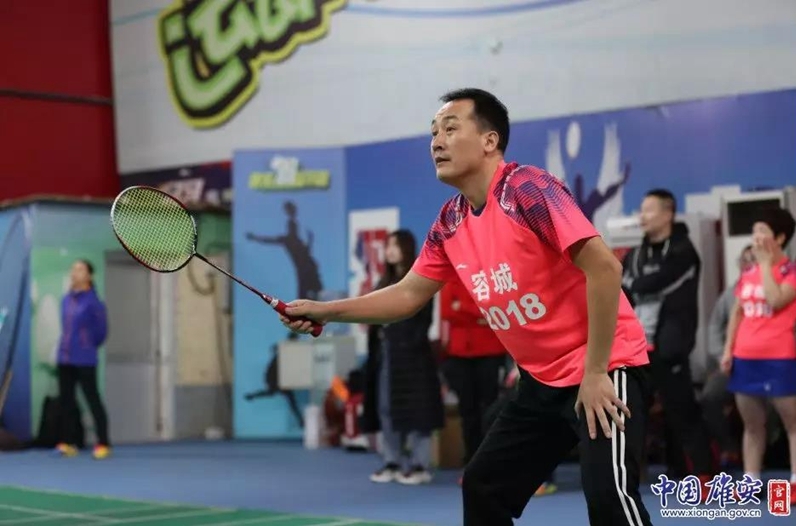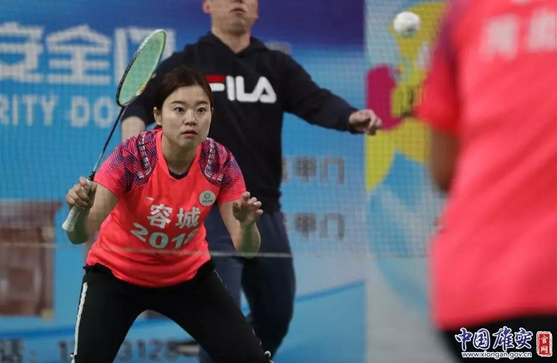 2018年容城县迎新春羽毛球赛上,选手聚精会神,时刻做好接球的准备。中国雄安官网毛鹤然 摄