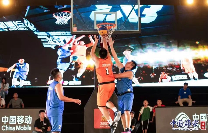 三人制篮球赛上的进攻与防守。中国雄安官网毛鹤然 摄