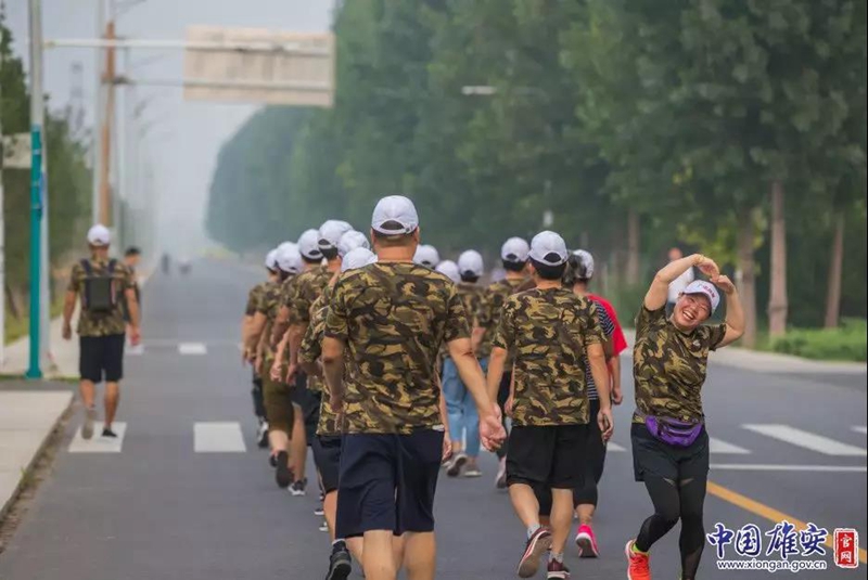 雄安晨练队伍中一颗明亮的“心”。中国雄安官网王京卓 摄