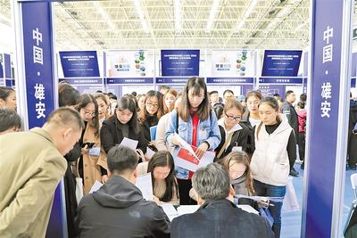 3个招聘岗位,现场却收到了226份简历。半天时间,中国二十冶集团有限公司展位前,前来应聘的络绎不绝,其中不乏高学历高技能人才。该公司负责招聘的工作人员王强介绍,此次招聘的资料员和安全员将直接参与新区基础设施建设。随着雄安新区大规模城市开发建设进入实施阶段,他们计划储备一批施工管理等方面的高技能人才。