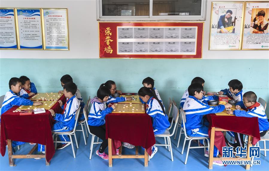 10月22日,河北省武强县北代学校棋艺社团的孩子们在下棋。为进一步深化素质教育,挖掘学生的内在潜力,河北省武强县以社团活动为载体,在全县中小学组建武术、军乐队、经典诵读、摄影、书画、舞蹈、编织、足球等各种社团300余个,每周定期开展丰富多彩的社团活动,培养学生的兴趣和爱好,丰富学生的校园生活。新华社记者李晓果 摄
