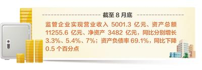从省政府新闻办10月22日举行的新闻发布会上获悉,近年来,省国资委以深化供给侧结构性改革为主线,切实做好改革攻坚、转型升级、动能转换、提质增效、风险防控等各项重点工作,不断推进国有企业高质量发展,所监管企业营业收入、资产总额、净资产持续增长,资产负债率持续下降。截至8月底,监管企业实现营业收入5001.3亿元、资产总额11255.6亿元、净资产3482亿元,同比分别增长3.3%、5.4%、7%;资产负债率69.1%,同比下降0.5个百分点。