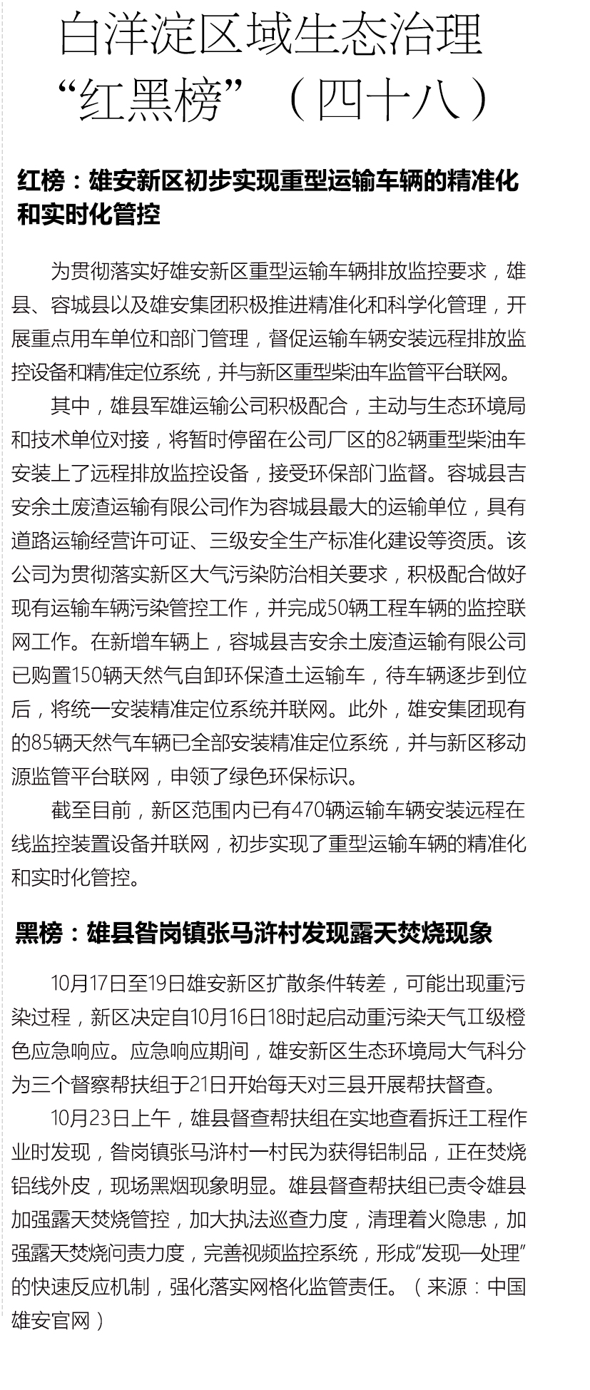 为贯彻落实好雄安新区重型运输车辆排放监控要求,雄县、容城县以及雄安集团积极推进精准化和科学化管理,开展重点用车单位和部门管理,督促运输车辆安装远程排放监控设备和精准定位系统。
