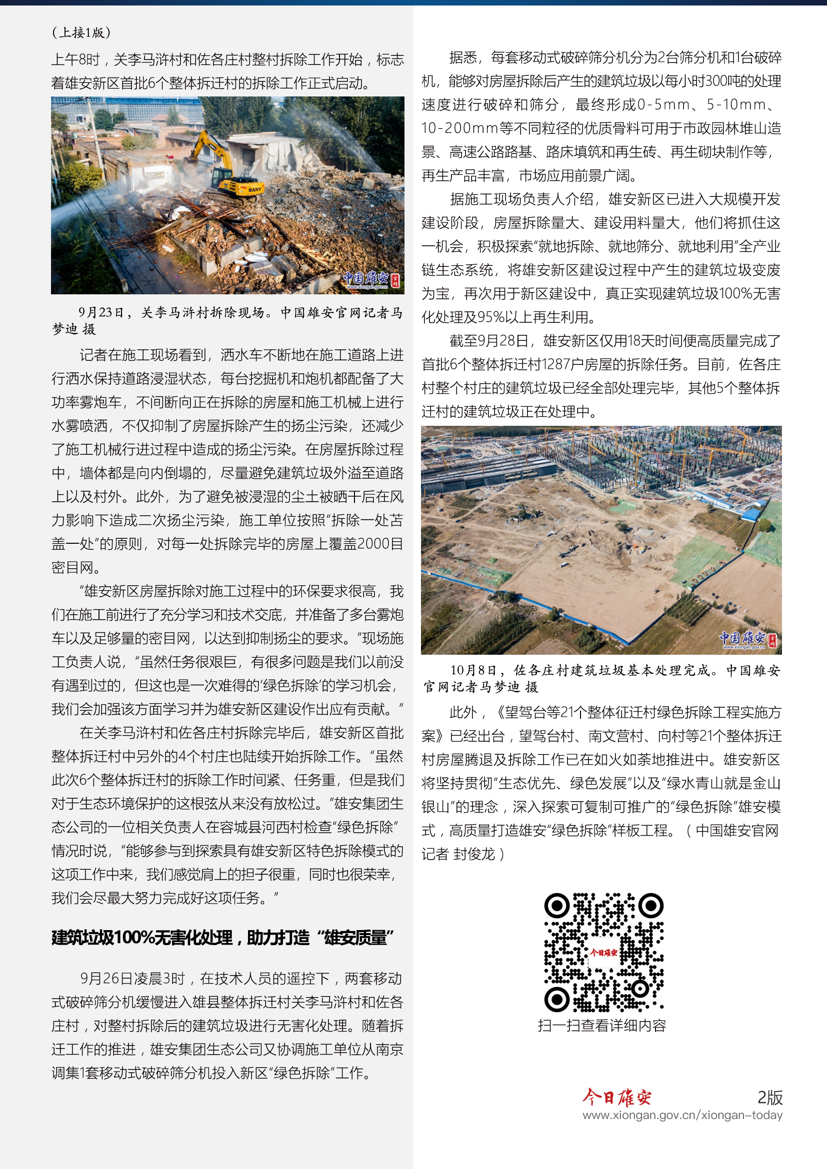 绿色拆除:雄安实现建筑垃圾100%无害化处理