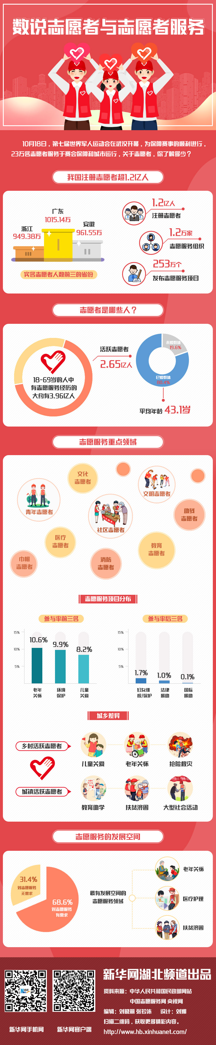 10月18日,第七届世界军人运动会在武汉开幕,为保障赛事的顺利进行,23万名志愿者服务于赛会保障和城市运行,关于志愿者,你了解多少?