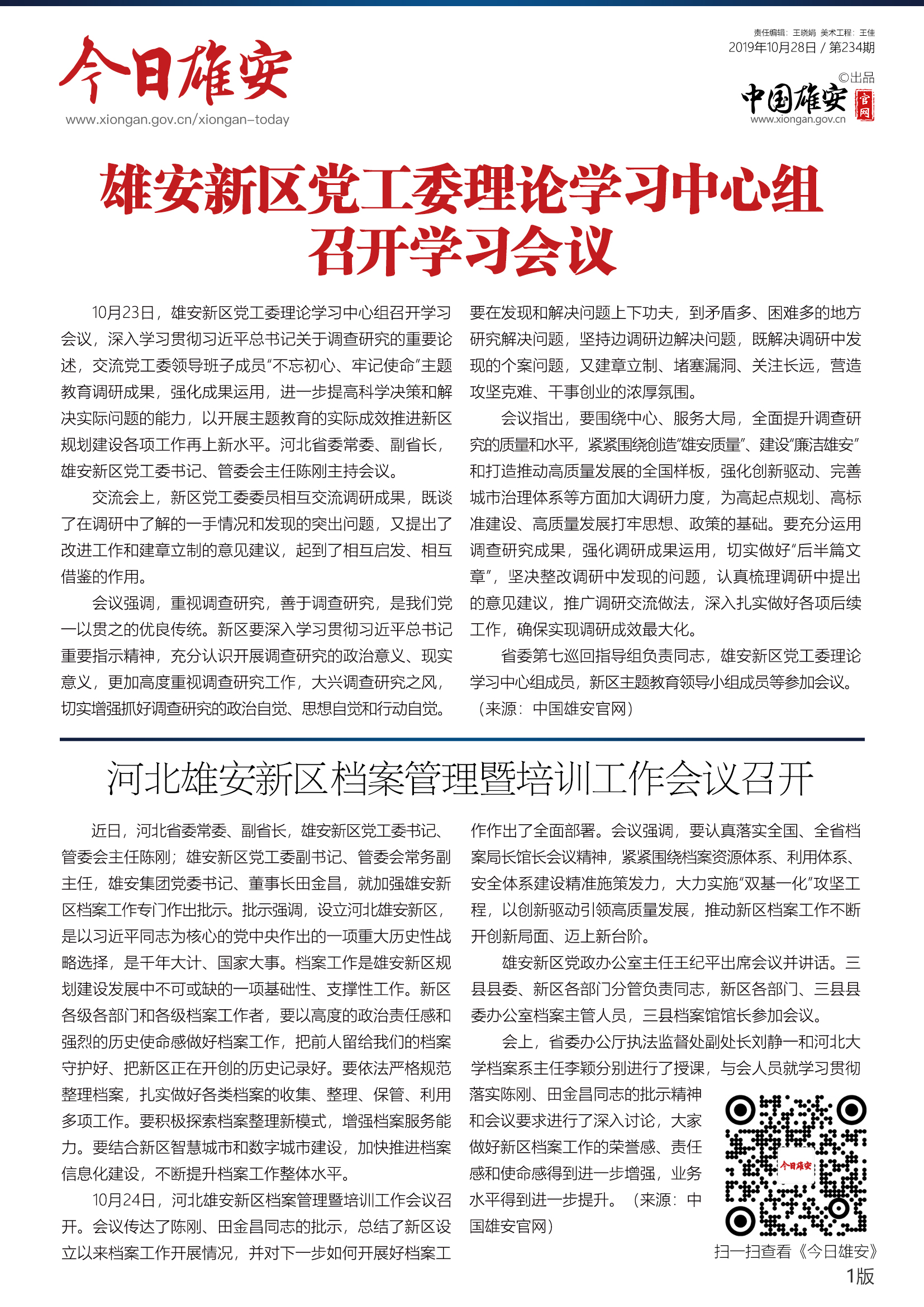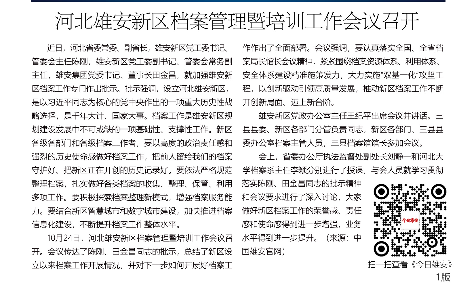 10月24日,河北雄安新区档案管理暨培训工作会议召开。