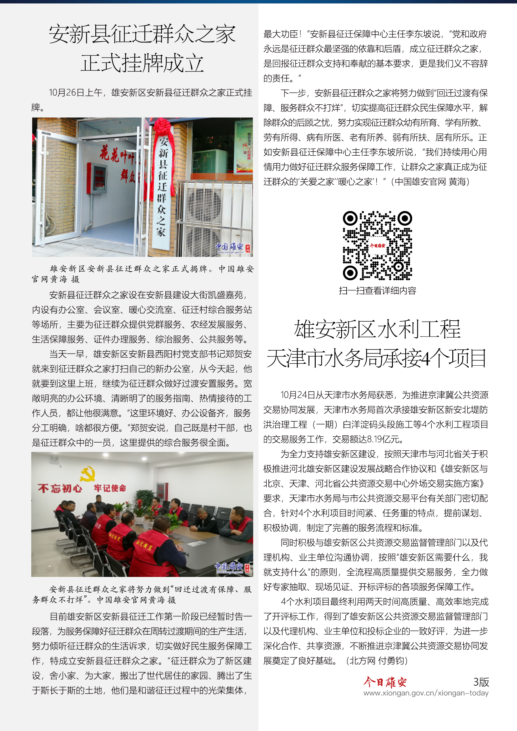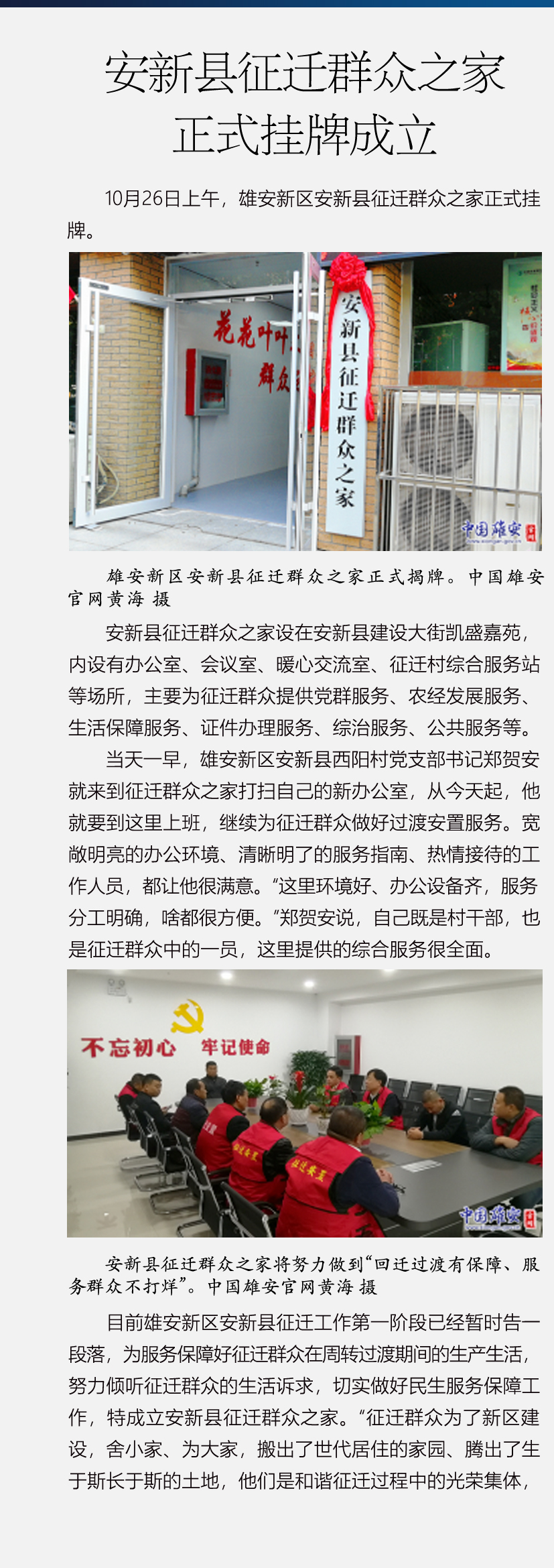 10月26日上午,雄安新区安新县征迁群众之家正式挂牌。