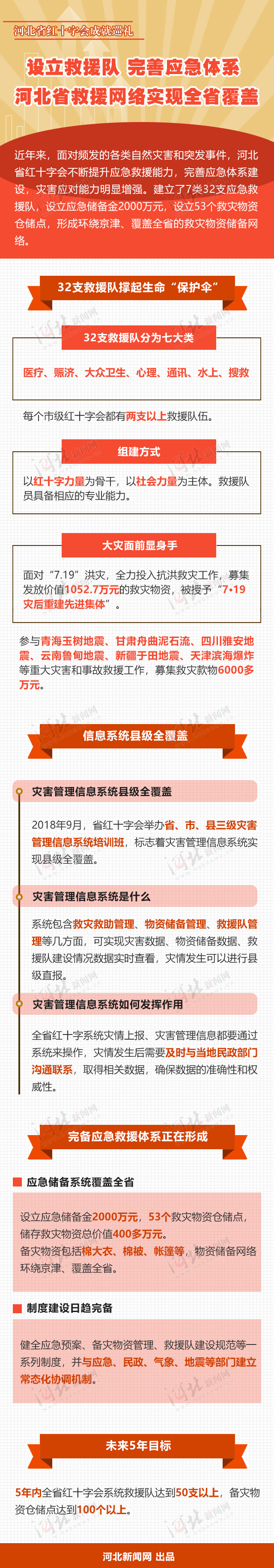 近年来,面对频发的各类自然灾害和突发事件,河北省红十字会不断提升应急救援能力,完善应急体系建设,灾害应对能力明显增强。建立了7类32支应急救援队,设立应急储备金2000万元,设立53个救灾物资仓储点,形成环绕京津、覆盖全省的救灾物资储备网络。