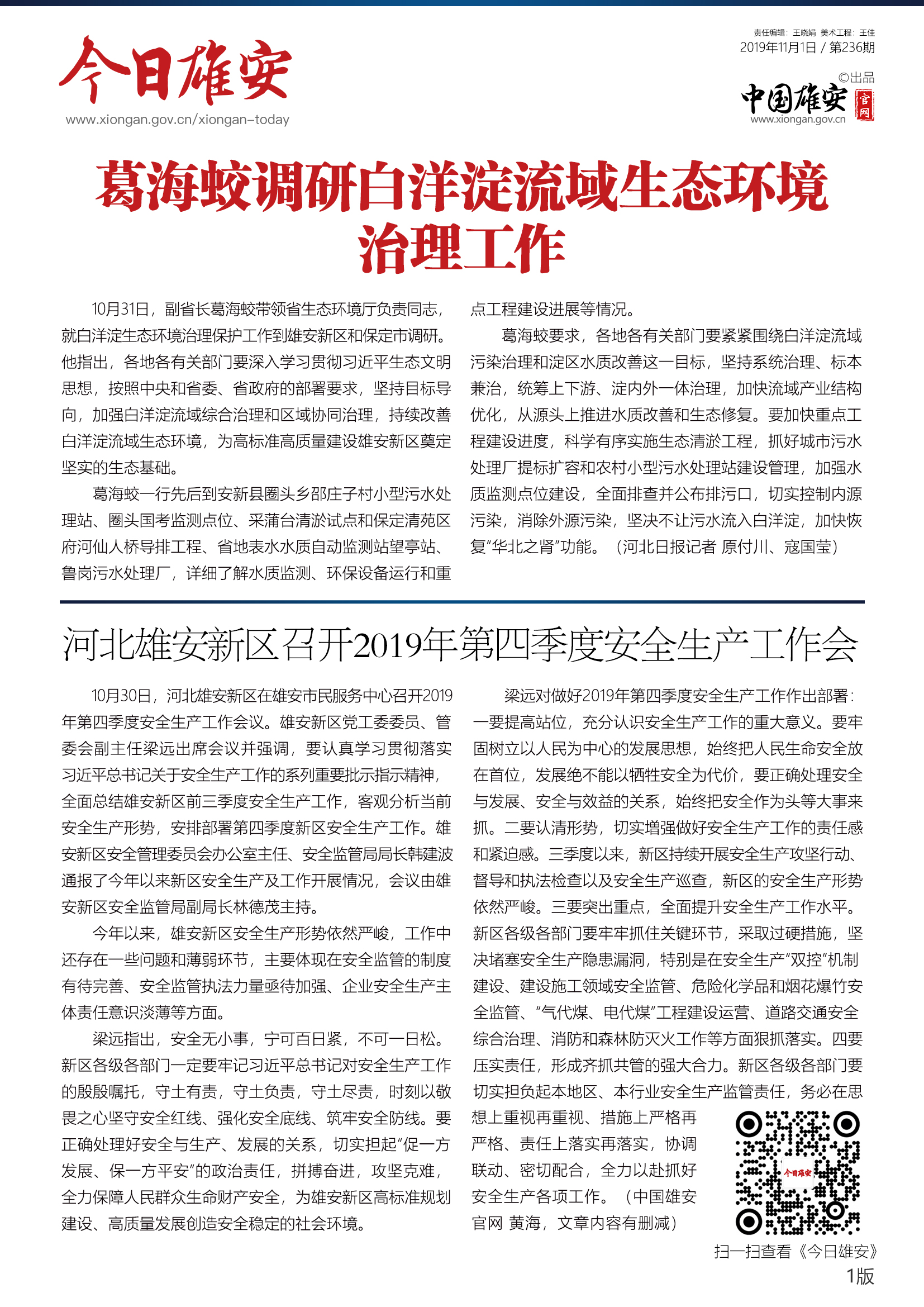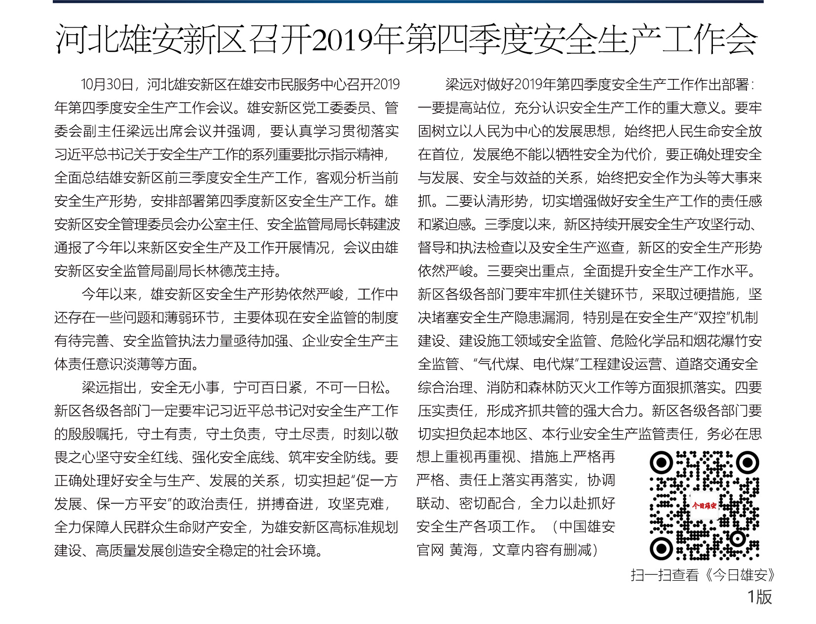 10月30日,河北雄安新区在雄安市民服务中心召开2019年第四季度安全生产工作会议。