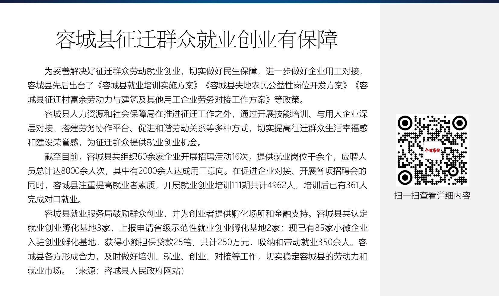 容城县人力资源和社会保障局在推进征迁工作之外,通过开展技能培训、与用人企业深层对接、搭建劳务协作平台、促进和谐劳动关系等多种方式。