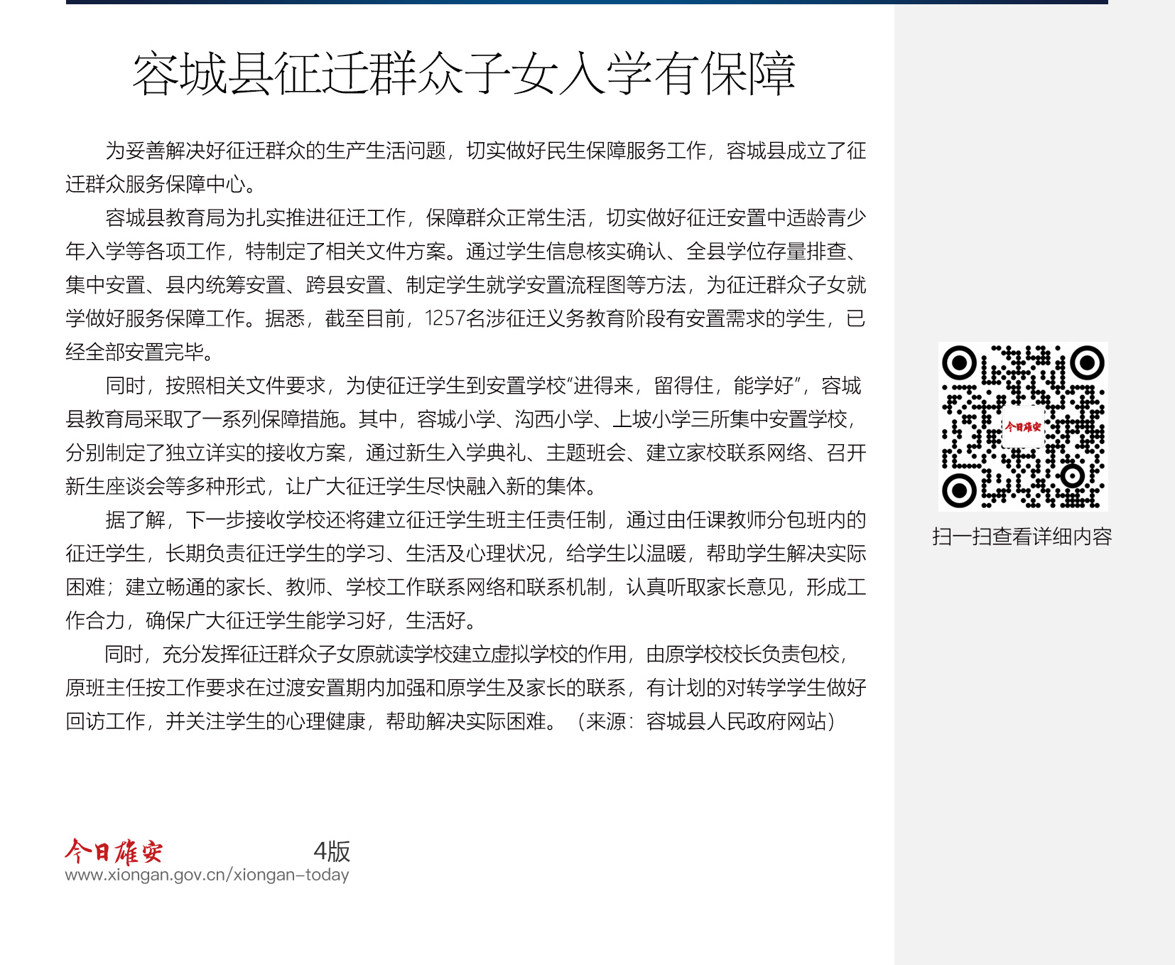 为妥善解决好征迁群众的生产生活问题,切实做好民生保障服务工作,容城县成立了征迁群众服务保障中心。