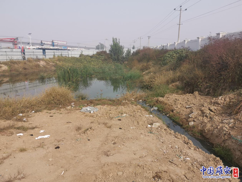 中铁上海工程局集团第四工程有限公司雄县制梁场生活区生活污水排入场区西侧的一坑塘内。雄安新区生态环境局供图