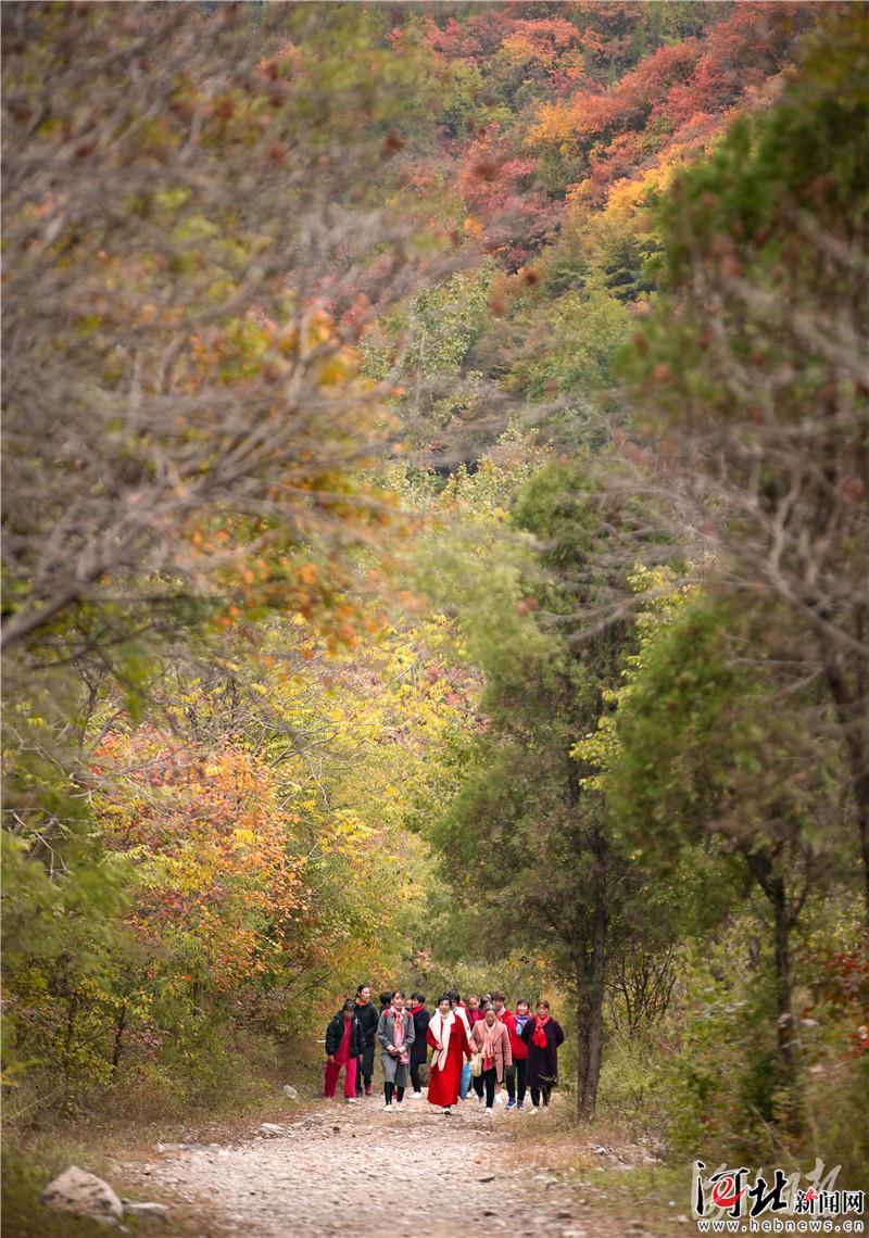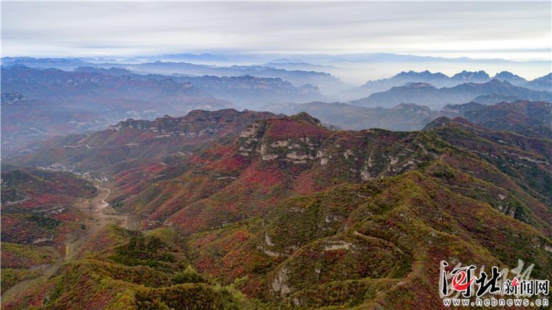 河北井陉仙台山以黄栌红叶著称,红叶分布面积达66平方公里,是华北地区最大的红叶观赏地,全国十大红叶观赏地之一,每到金秋,层林尽染,漫山红遍,游人如织。近日,中国林业新闻网发布了2019第三届中国最美森林榜单和2019中国森林旅游年度创新力人物名单,河北井陉仙台山黄栌红叶林荣登“2019中国最美森林”榜单。(记者田瑞夫 通讯员苏丽龙摄)