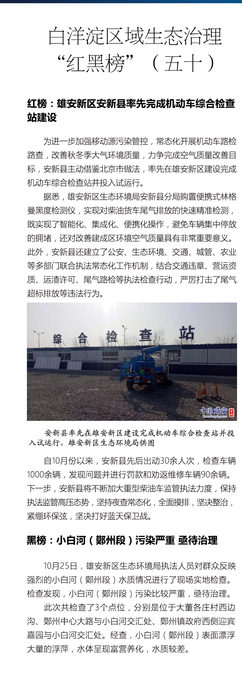 为进一步加强移动源污染管控,常态化开展机动车路检路查,改善秋冬季大气环境质量,力争完成空气质量改善目标,安新县主动借鉴北京市做法,率先在雄安新区建设完成机动车综合检查站并投入试运行。