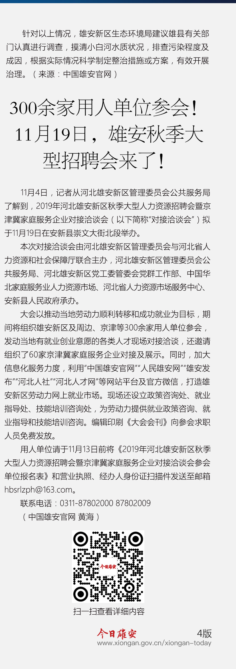 2019年河北雄安新区秋季大型人力资源招聘会拟于11月19日举办