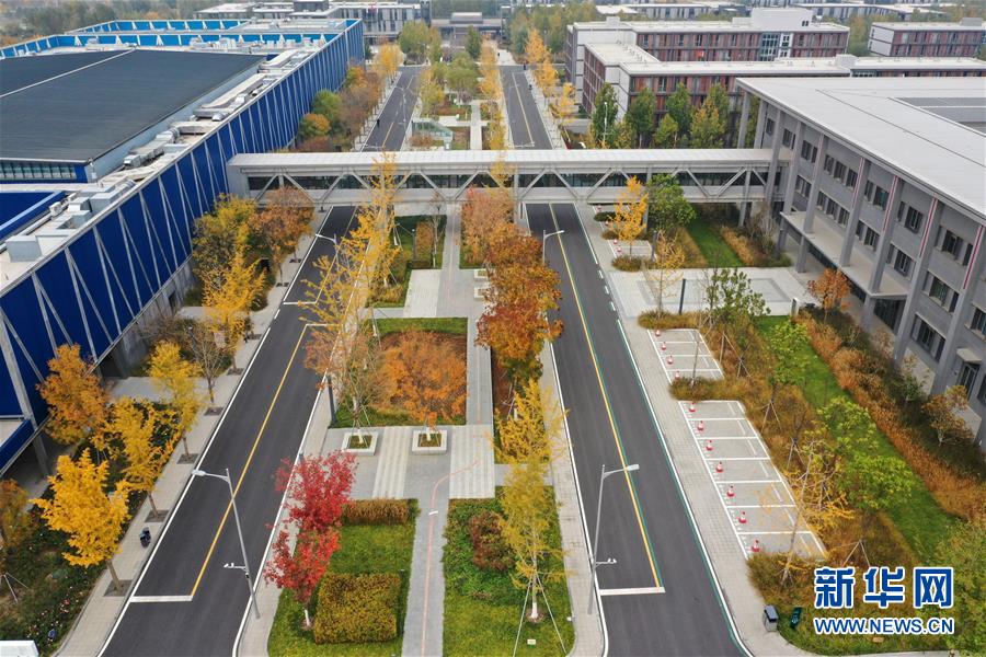 11月6日拍摄的雄安新区市民服务中心(无人机拍摄)。深秋时节的雄安新区色彩斑斓,景色宜人。新华社记者邢广利 摄