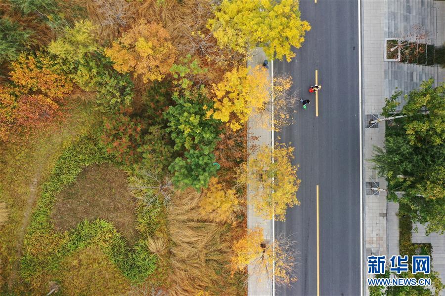11月6日拍摄的雄安新区市民服务中心一景(无人机拍摄)。深秋时节的雄安新区色彩斑斓,景色宜人。新华社记者邢广利 摄