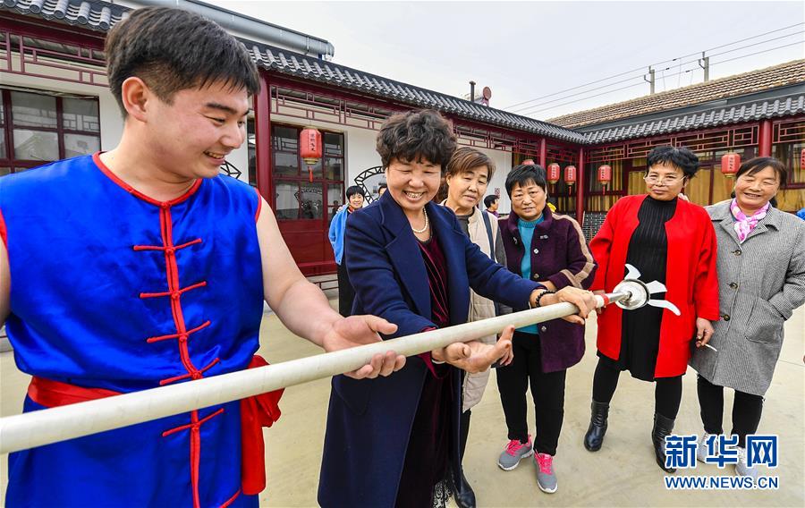 11月6日,在文安县苏桥镇,飞叉表演艺人与游客互动。近年来,河北文安县以建设文旅产业作为抓手,依托苏桥镇、赵王新河水系、吴石槽示范村等文旅项目,打造具有洼淀特色的旅游目的地。新华社记者李晓果 摄
