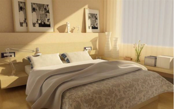 床单、被套、靠枕不要选择暗色调,可以采用红色、桔色、粉色等色系,明亮、生动的色彩会启动肾上腺素分泌,让人兴奋,感觉身体很有力量,或者在床边放一盆植物(如果对植物过敏,可以摆放仿真花)。