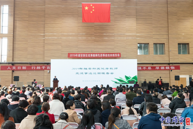 6.为充分展现雄安新区教师队伍的良好精神风貌和整体形象,2019年雄安新区优秀教师先进事迹巡回报告会陆续在新区三县举行,5位优秀教师组成雄安新区优秀教师先进事迹报告团,现场分享先进教学经验和感人事迹。