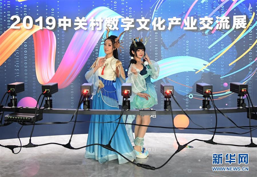 11月9日,两名角色扮演演员在展览中体验3D摄影。11月8日至11月10日,2019中关村数字文化产业交流展在北京中关村召开。本次交流展汇集了20余家数字文化产业机构推出的优秀项目,还涵盖了2019海淀高校电竞邀请赛等活动。新华社发(任超摄)