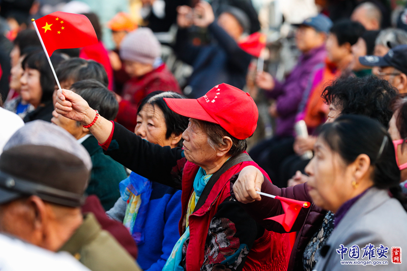 在雄安昝岗高铁站片区,演出随着舞蹈《党旗飘扬》拉开帷幕。歌曲《心中的雄安》以大气恢弘的旋律,谱写出了奋进的雄安新区;音乐快板《千年大计》节奏明快,配合表演者行云流水的说唱,吸引现场观众拍手称赞。除了歌舞以外,还有小品、魔术、河北梆子、二胡表演等多种表演形式。最后,演出在《我和我的祖国》互动合唱中圆满结束。