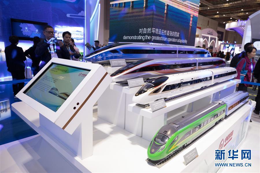 11月8日,参观者在第二届进博会中国馆中国铁路展台参观。第二届中国国际进口博览会中国馆以庆祝新中国成立70周年为主题,呈现70年来新中国面貌发生翻天覆地的变化,展示我国经济社会发展的历史性成就和新时代新机遇。新华社记者 金立旺 摄