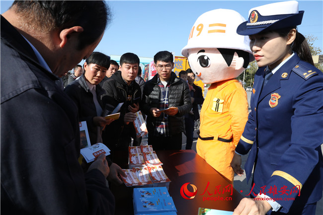 雄安新区2019年“119”消防宣传月启动现场发放各类消防安全宣传资料5000余份。胡宇浓 摄